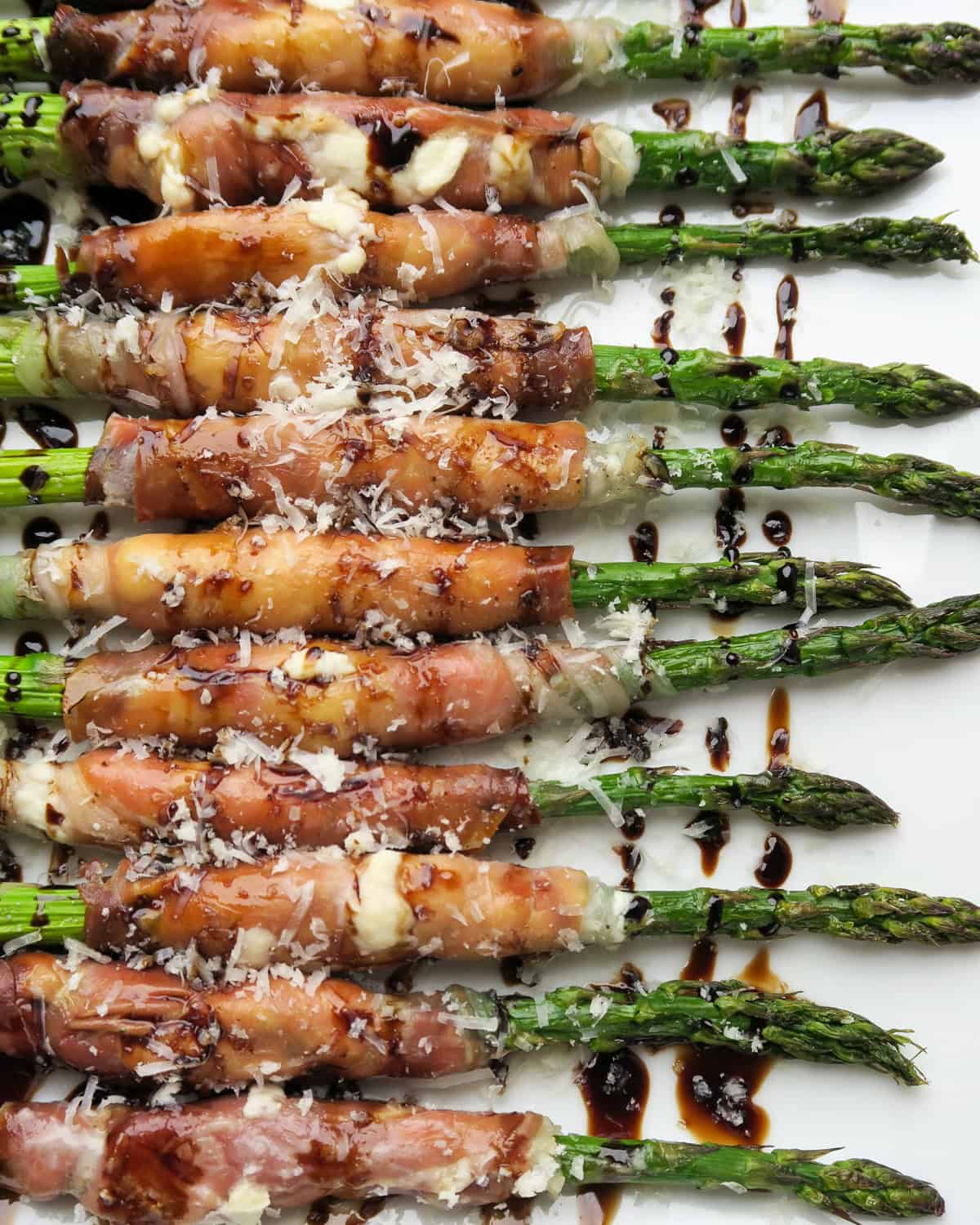 We’re big fans of adding a sprinkle of parmesan cheese and a drizzle of balsamic glaze to our prosciutto wrapped asparagus. It’s yummy on its own, but the glaze adds a delicious burst of flavor! It has quickly become a family favorite...even for those who usually dislike asparagus. 🙂